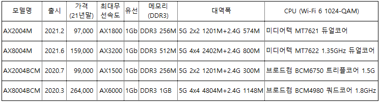 * MU-MIMO, Mesh, 네트워크 서버 공통 적용 (다중접속시 메모리도 큰 영향을 준다고 합니다)