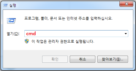 2. 실행창에 cmd 입력